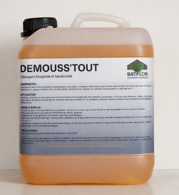 DEMOUSS’TOUT est un produit antimousse préventif et curatif dédié au démoussage façade, terrasse et toiture. Ce traitement fongicide est biodégradable à 98% pour le prêt à l’emploi et à 90% pour le concentré. Il est spécialement formulé pour traiter toutes les surfaces de manière économique et efficace tout en préservant l’environnement